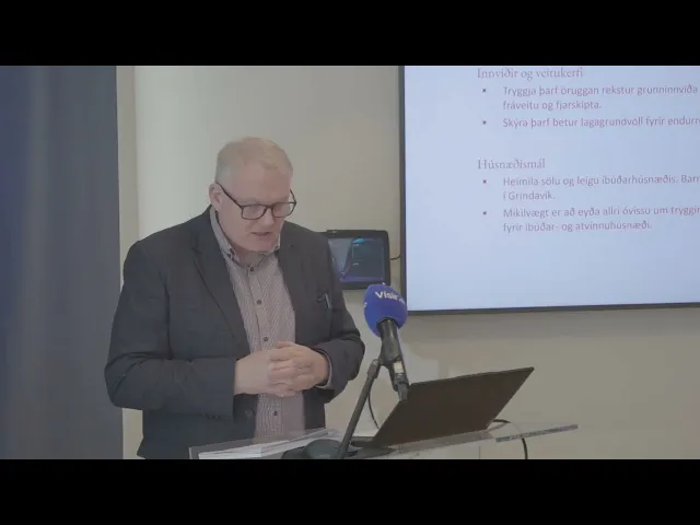 Upptaka af fréttamannafundi Grindavíkurnefndar 10. apríl 2026 þar sem kynnt var Rammaáætlun um endurreisn Grindavíkur.